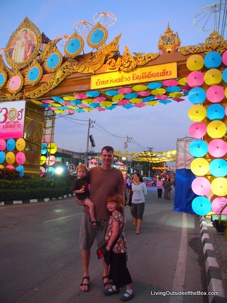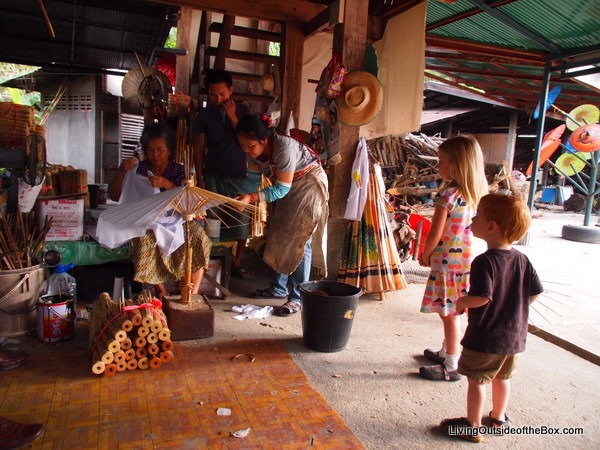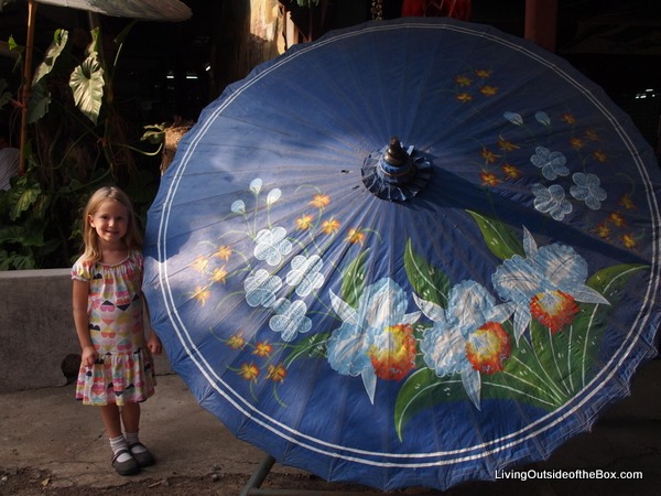 We had heard that there is a yearly Umbrella Festival in Bo Sang, a town just 15 minutes outside of Chiang Mai. This festival takes place the 3rd weekend of January. Information online is terribly vague, but we took our chances and packed up the kids to see if we could track down the festival.