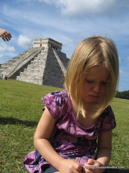 We arrived, and discovered that Chichen Itza entry cost us about $342 pesos, our heftiest pyramid entry fee so far (most totaled about $74 pesos each). They actually charged for kids here, which was kind of unusual. Still, considering the exchange rate, we still thought $28 was a decent deal for our family!
