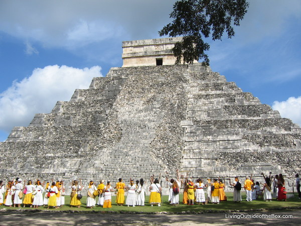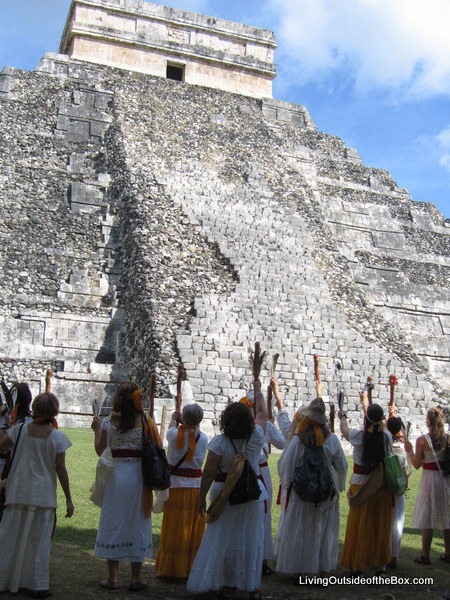 Oddly, we arrived at the same time as a group of about 100 women who came and lined up along the side of the large pyramid, and chanted, danced, and played a bit of music for some type of ritual.
