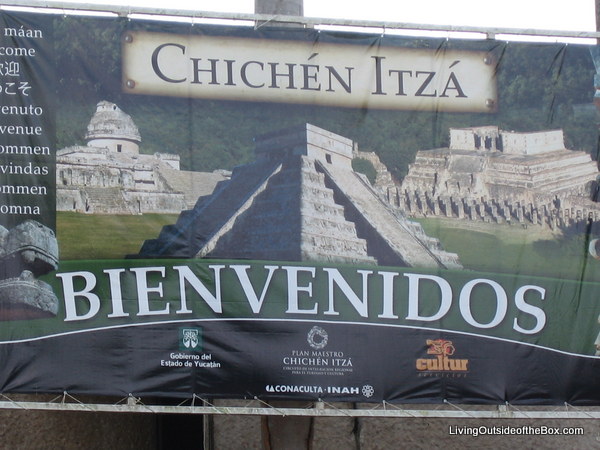 In the morning we drove out of the tiny town of Chichen Itza and went to find the pyramids. On the way, I couldn’t help but check at the baby blue sign below: