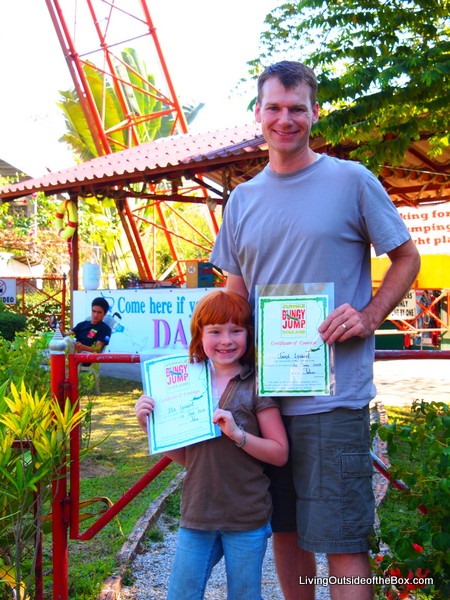 On the forth afternoon we took the family out on motorbikes to the Mae Sa Road. This was the day we simply stopped for lunch, and unexpectedly watched our 7 year old go tandem bungee jumping with my husband, after she begged and begged for permission.