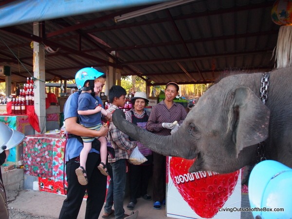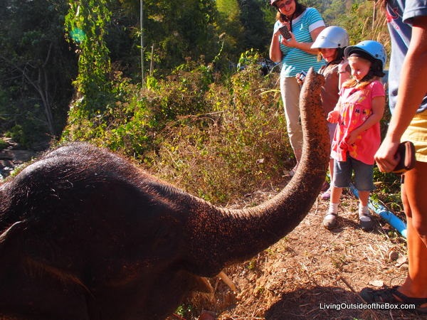 It took our kids by surprise! The grandparents were in shock that they got to see an elephant that close, and Jared and I snickered as we thought about our surprise plans later that week to spend a day doing “Elephant Daycare” with them! If you haven’t read about our amazing tour with elephants in Chiang Mai, read it now!