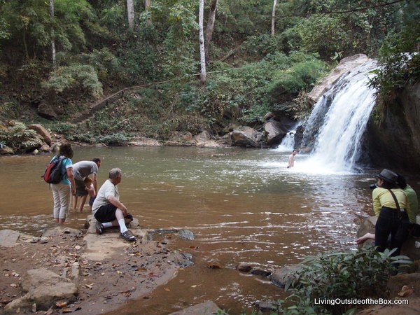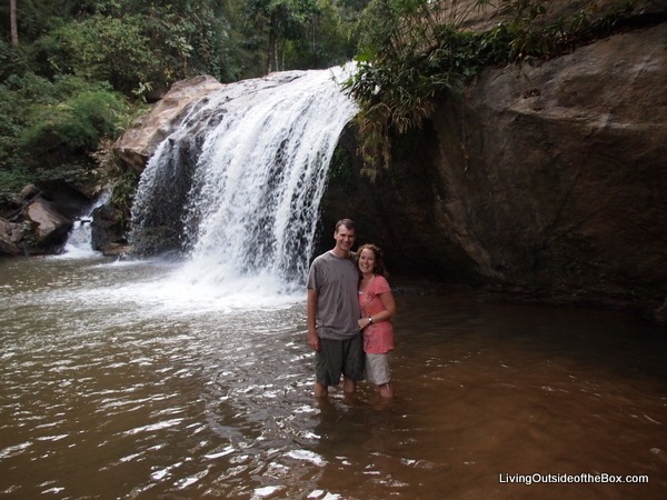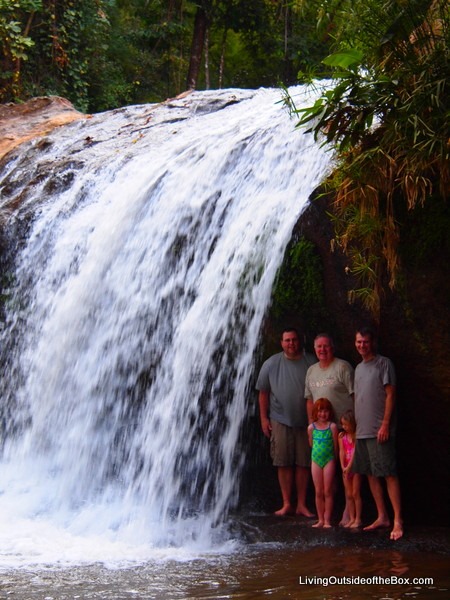 Next, we visited the Mae Sa Waterfalls, which has a small entry fee, and after parking we started on the decent walk/hike out toward the falls. We only made it to the 2nd level of falls (we could have gone further—but had already worn down the kids)…but it was still great!