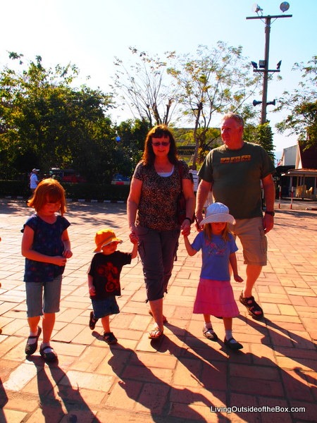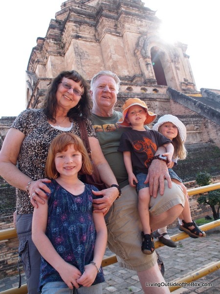 In this case, Jared’s parents and brother came for a week visit to Chiang Mai!  After a grueling 24-hours of traveling, they arrived early in the morning and we let them rest for the first day. The next day we took a songteow into town and helped them rent their own motorbikes. The kids especially loved the attention of their doting grandparents!