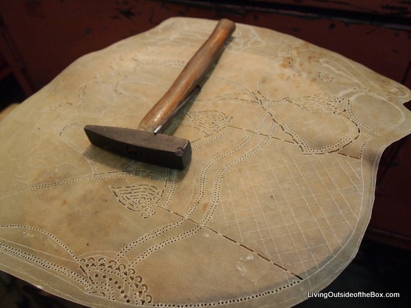 I thought this vendor did amazing work out of leather hide. It is carved and then painted. The beginning steps…
