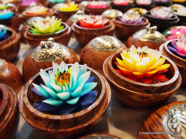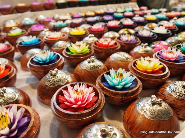I immediately fell in love with this vendor when I spotted these rice paper lamps of all shapes, sizes, colors, textures, etc. He also sells wholesale Smile  What do you think…should I begin importing Thai lamps to the US?