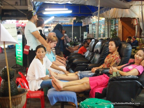 A visit to Thailand wouldn’t be complete without a Thai massage (Jared’s had one, now…I’m still a little hesitant)! A one-hour back bending/cracking Thai massage will put you back about $5 USD. A foot massage sounds nice…