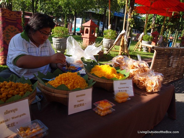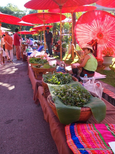 Wats (Buddhist temples) are to be found everywhere in Chiang Mai. There are literally hundreds, I believe! On our way to church, we found ourselves dropped off early at a nearby wat, which was just beginning to set up a little market. We walked through it and enjoyed some of the smells.