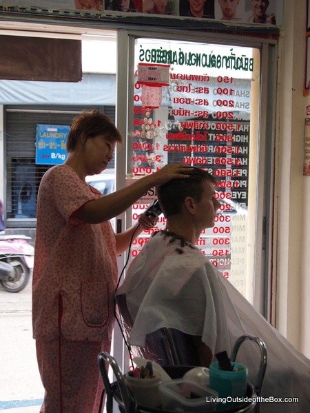 Jared got a hair cut for 150 Baht (about $5 USD). It required a little fixing-up at home…but at that price I’m not complaining.