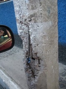 Maneuvering down narrow village streets can be tricky. In downtown Ajijic, most of the electric poles next to the street look like this…
