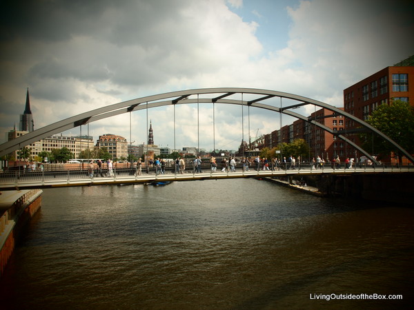 The exhibit is located in the Speicherstadt area, the historic warehouse district of Hamburg…essentially on a little island on the River Elbe (accessible by bridge).