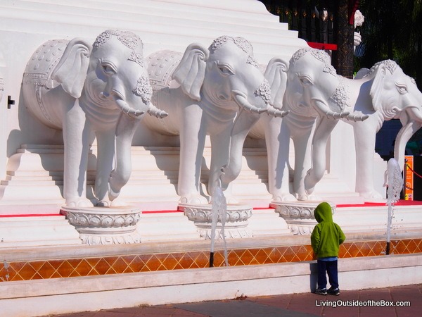 Like other countries we have visited, Thailand celebrates “Children’s Day”(how did the US miss this holiday?!). We wanted to do something fun for the kids, so we looked up activities online and discovered some free kid’s activities at the Royal Flora Ratchaphruek Garden in Chiang Mai (a mouthful, I know). It’s a huge garden complex next to the Night Safari.