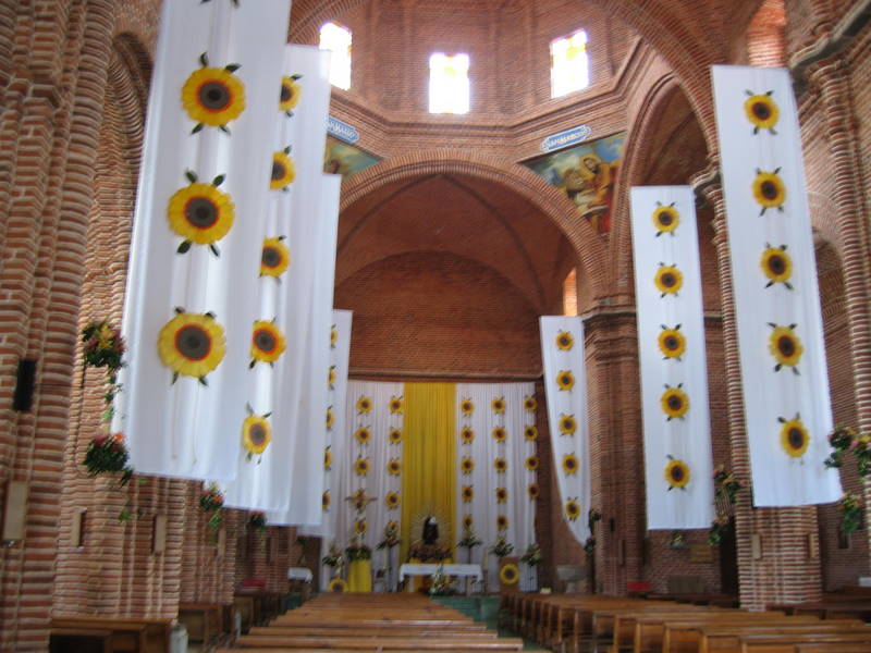 I’ve never learned if it is appropriate to take photos in some of the various Catholic Chapels throughout Mexico. I figure if I am not disturbing anyone’s worship, it is pretty cool to keep a record of the varying styles. For some reason there was a Sunflower theme going on in town, and we saw Sunflower banners throughout town.